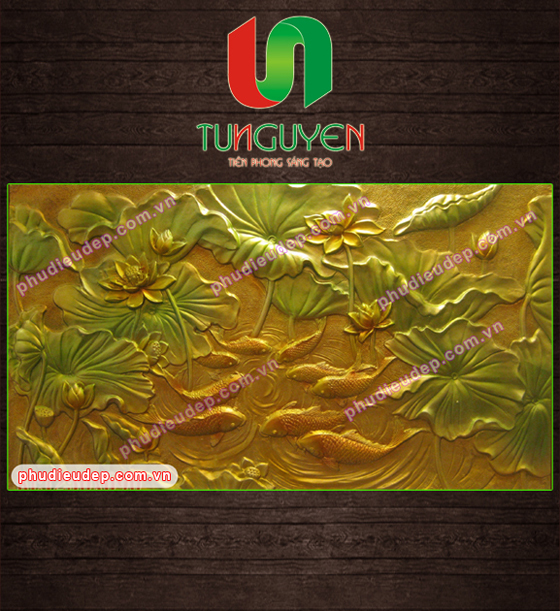 + Phù điêu sen cá làm bằng chất liệu nhựa composite siêu bền.