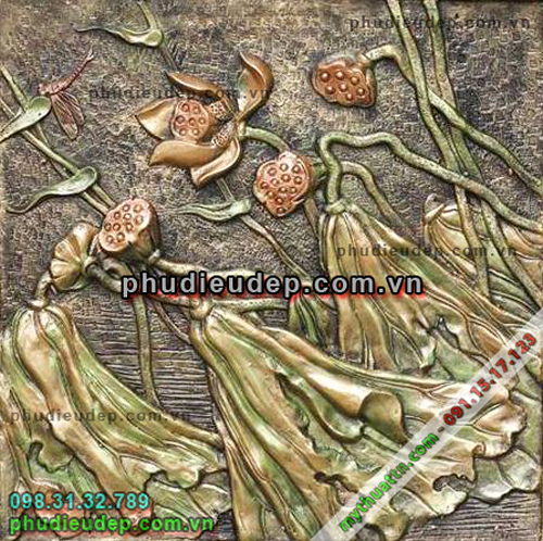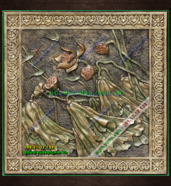 Một tác phẩm mới: phù điêu hình hoa sen nghệ thuật giả đồng vàng