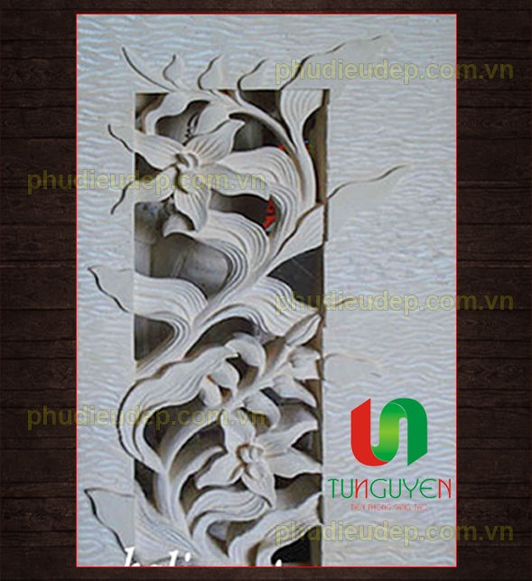 + Phù điêu hoa lá chạm lộng làm bằng chất liệu nhựa composite siêu bền.