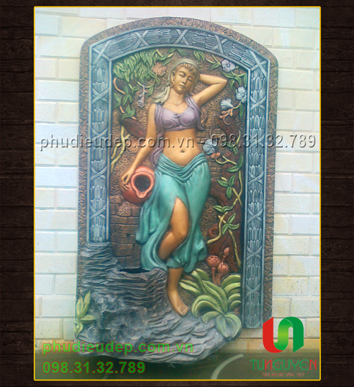 Nếu như phu dieu hoa sen là mẫu phù điêu phổ biến trang trí nhưng không gian tín ngưỡng tôn giáo thì Phù Điêu Thiếu Nữ Ôm Bình thường được dùng trang trí tiểu cảnh trong kiến trúc nhà ở, nhà hàng, quán cafe...