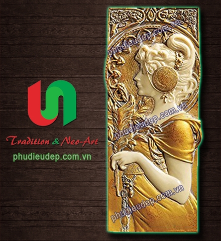 Mẫu tranh thiếu nữ ôm bình - Hoặc gọi theo cách gọi của khách hàng: phù điêu cô gái ôm bình, phù điêu cô thiếu nữ ôm bình, phù điêu...